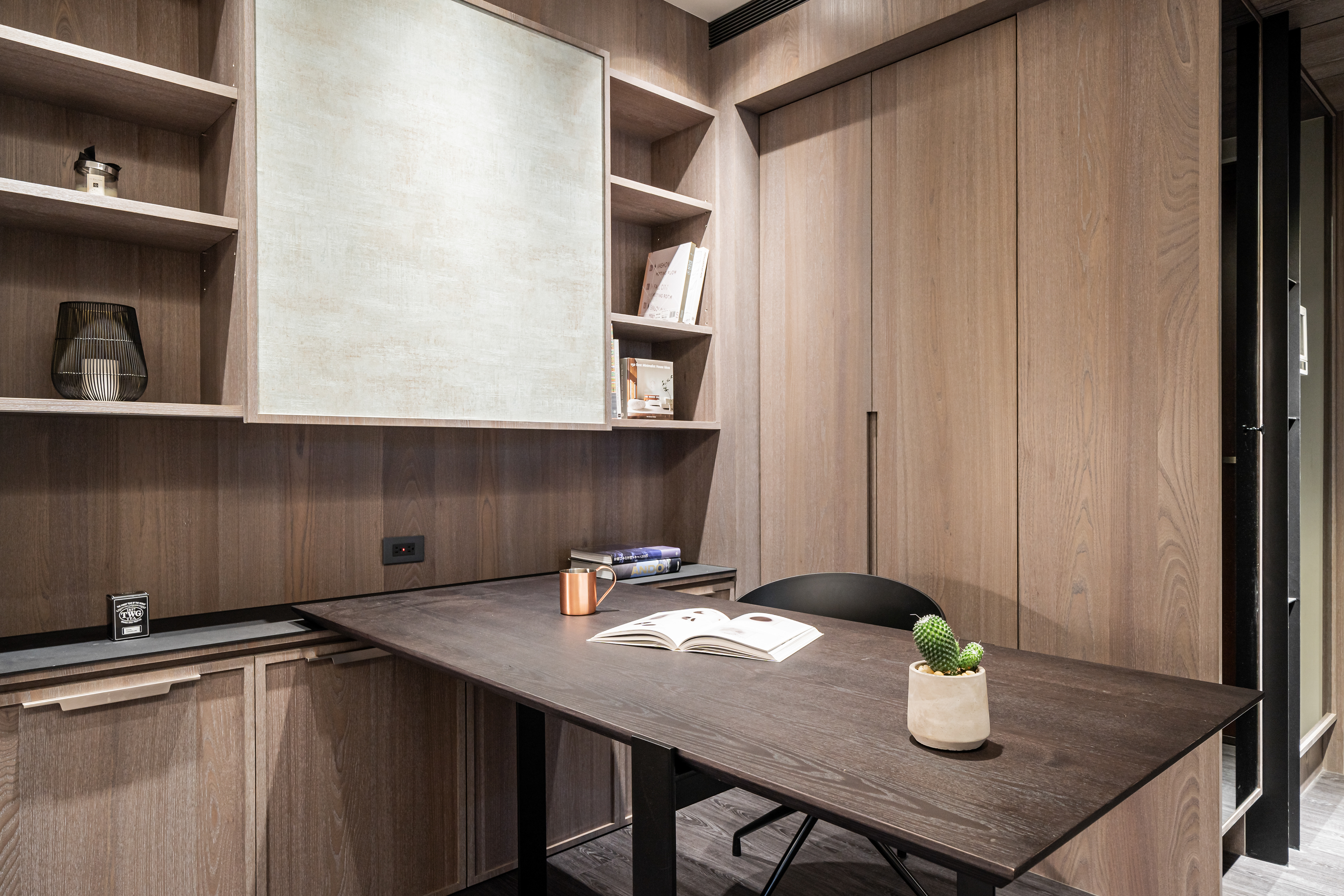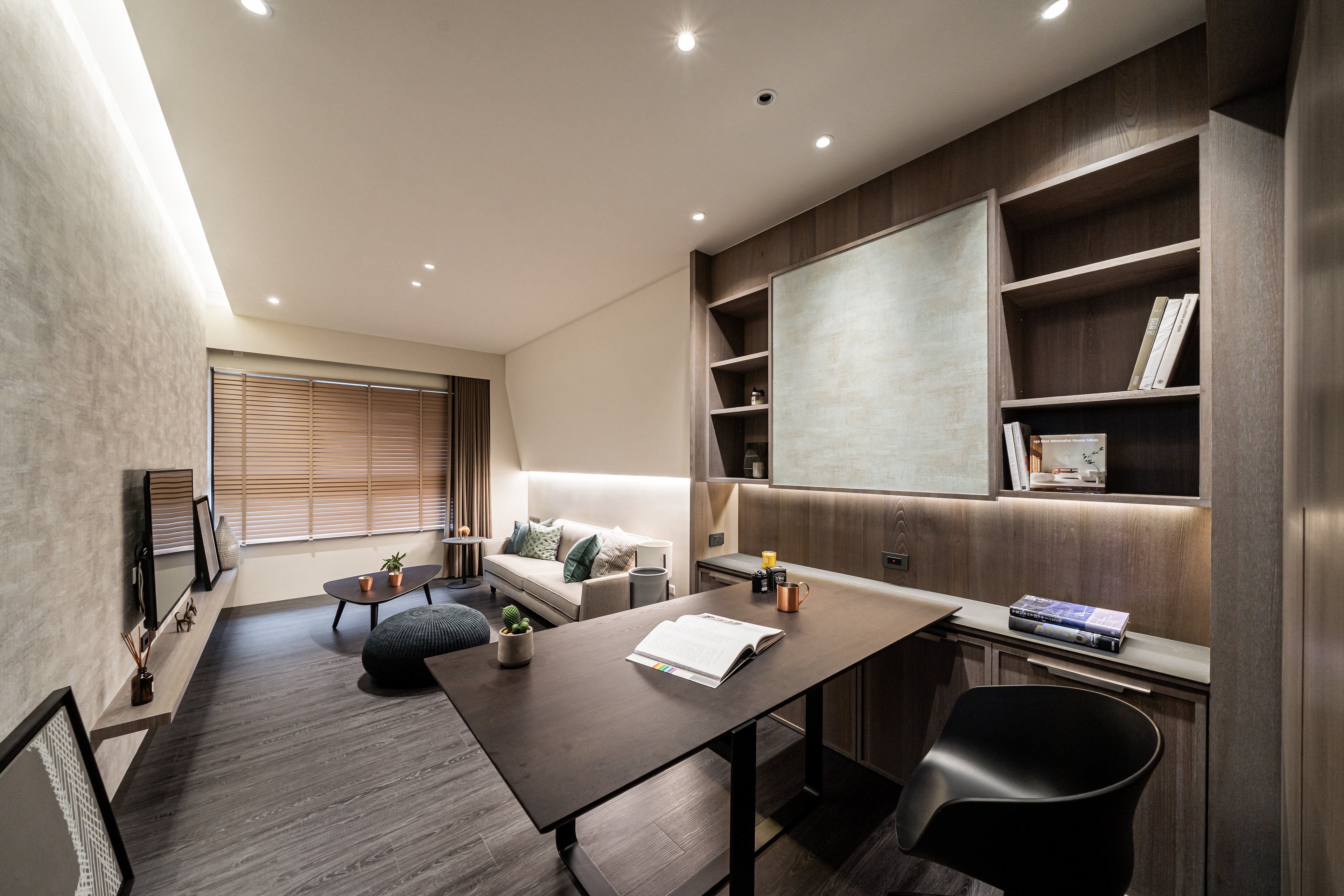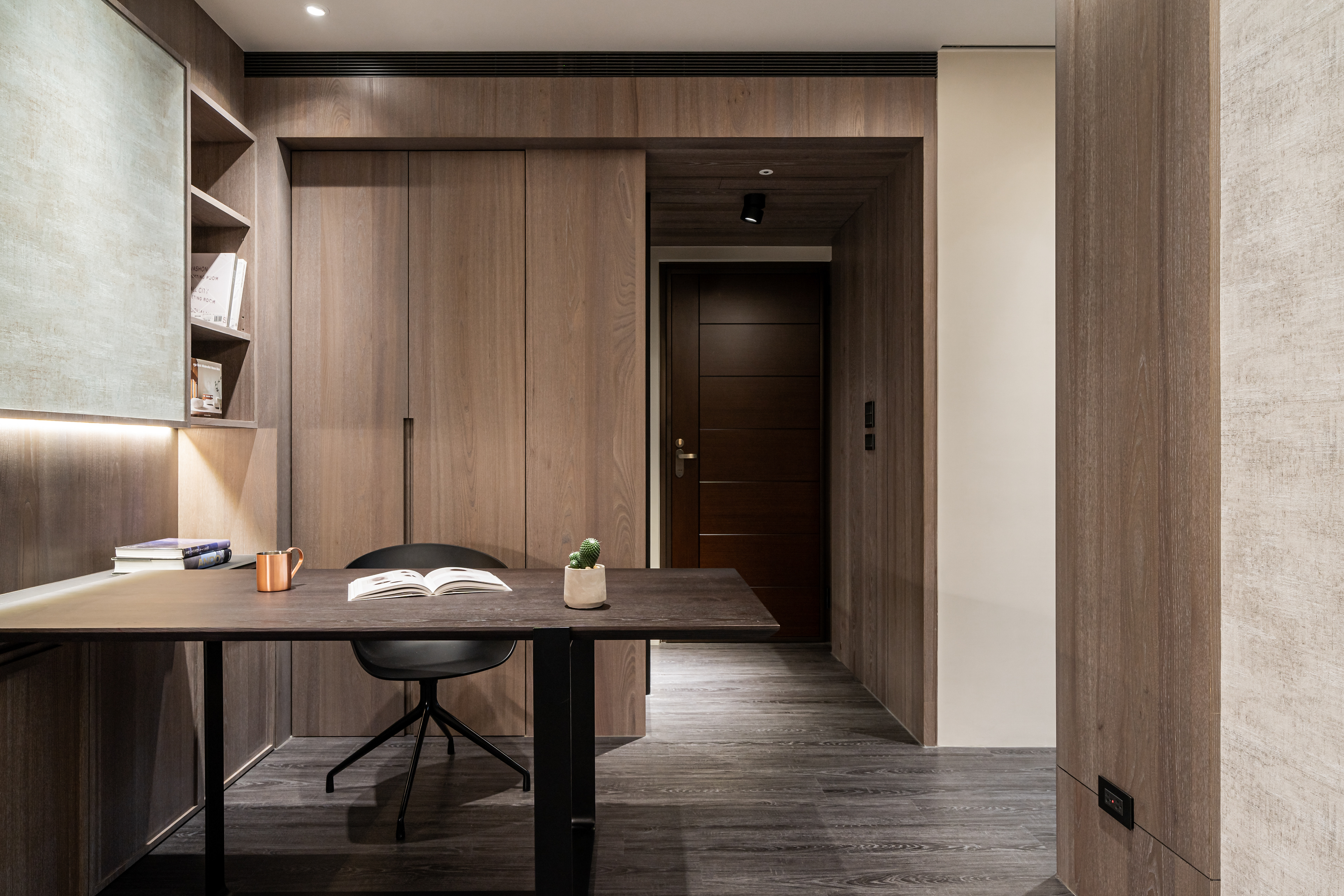 深色調的木質與牆面交織出安定的頻率
