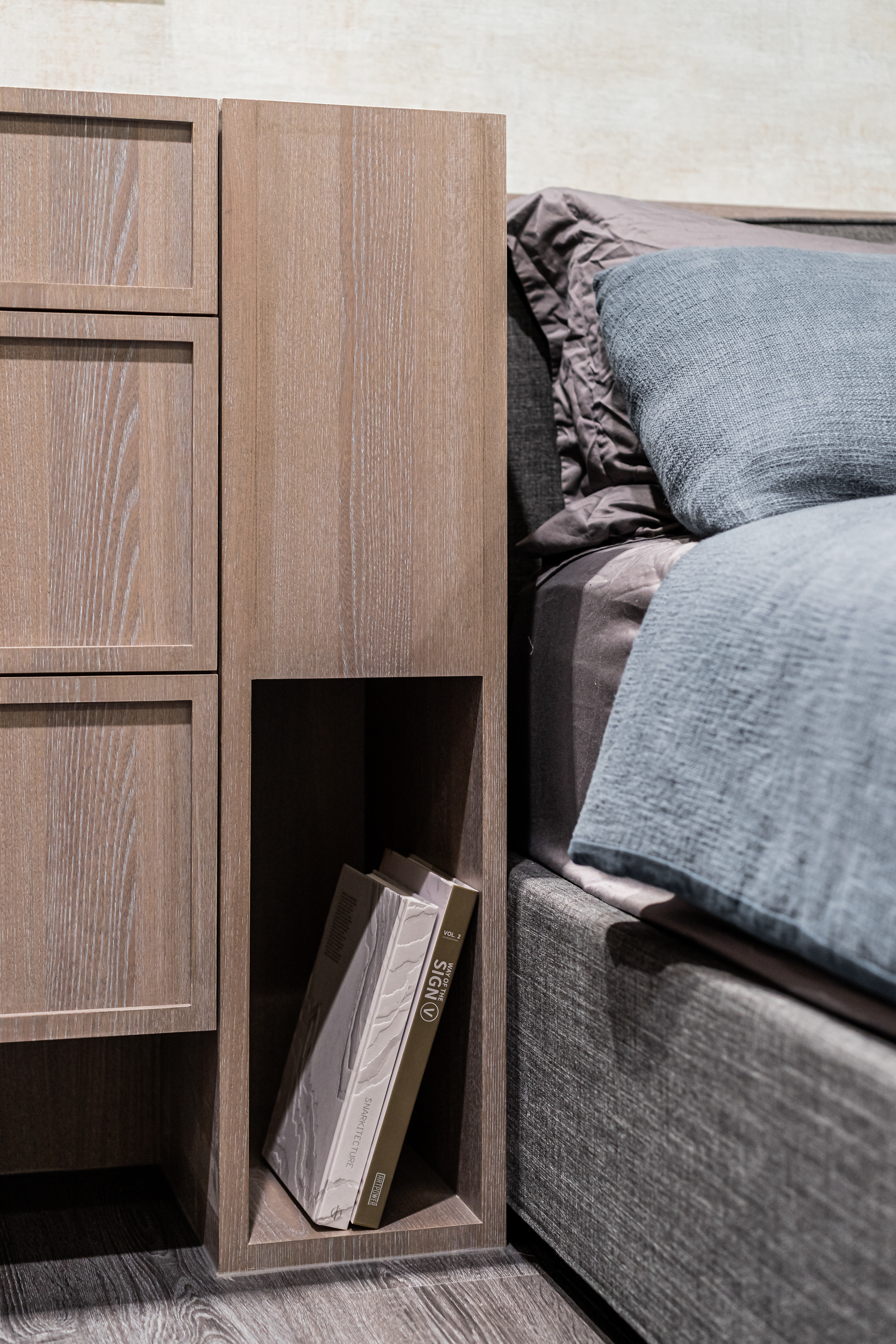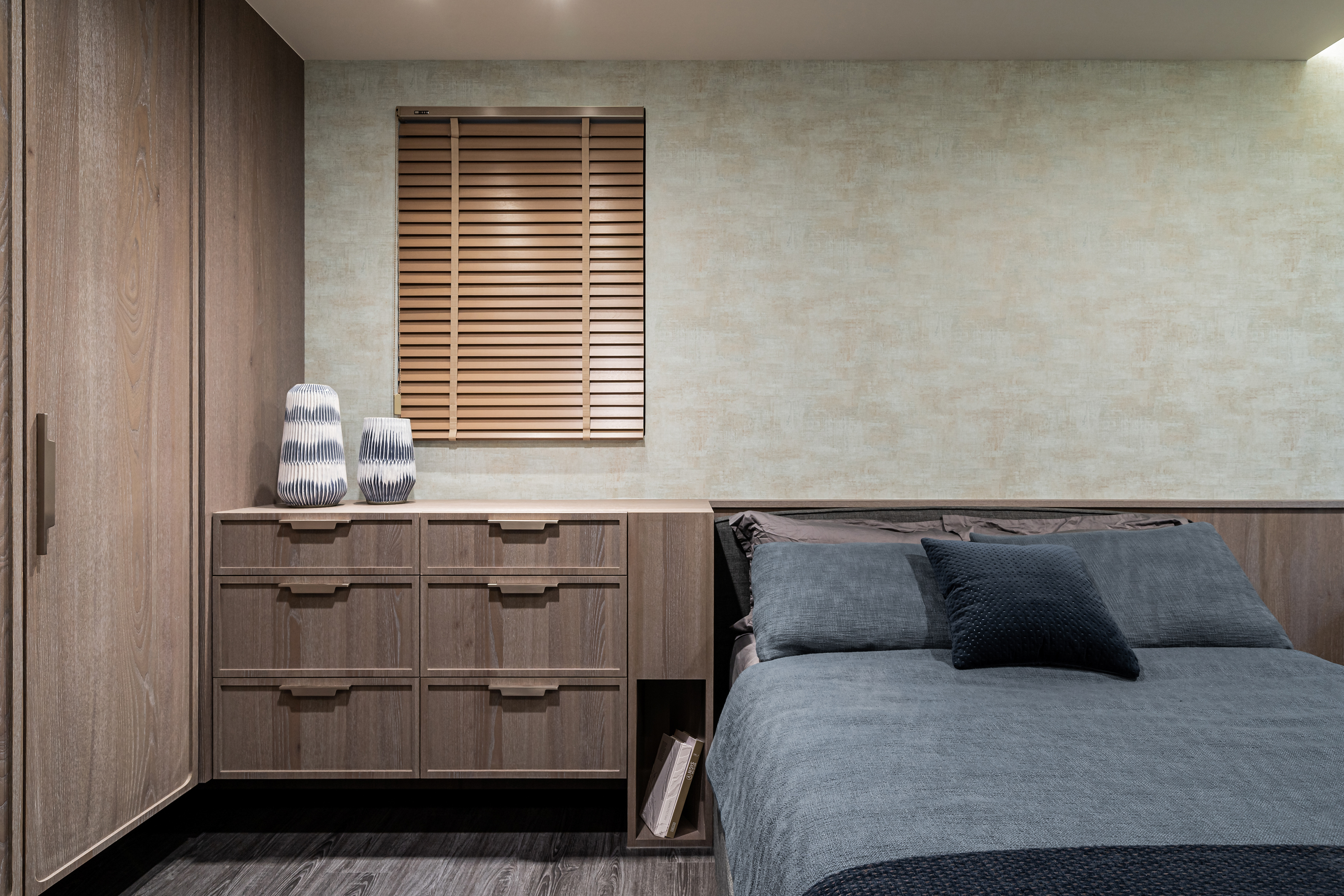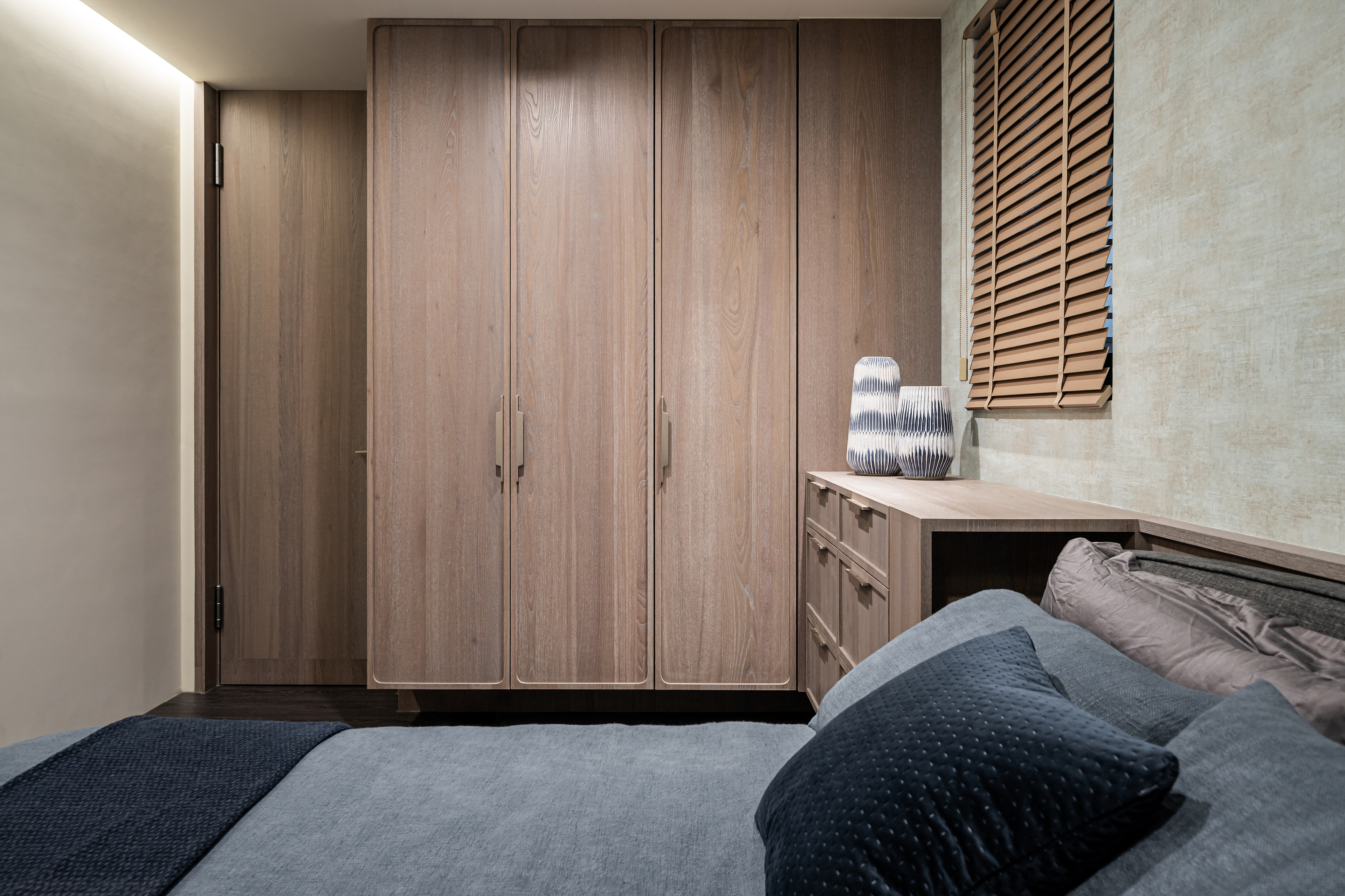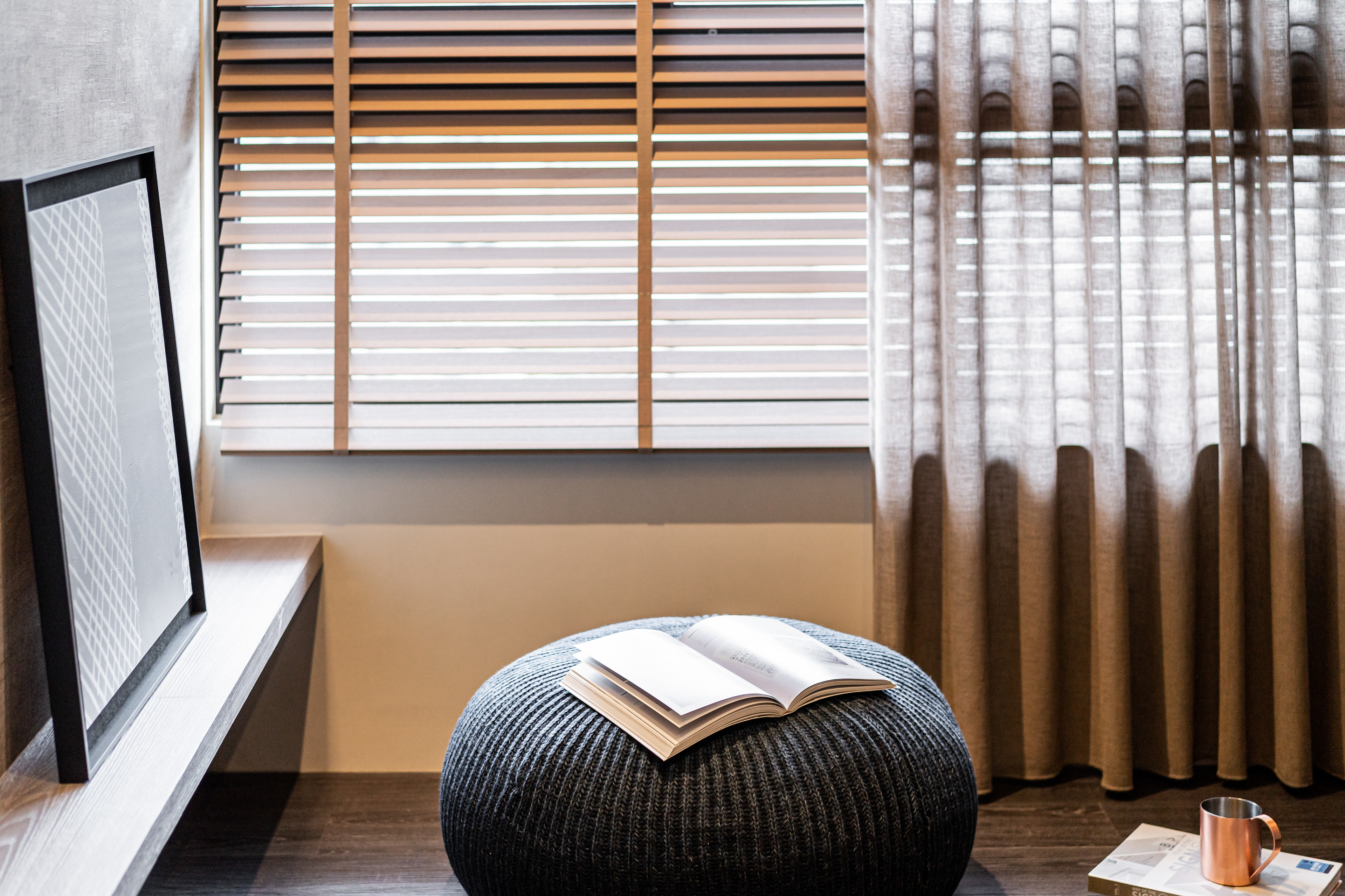 深色調的木質與牆面交織出安定的頻率